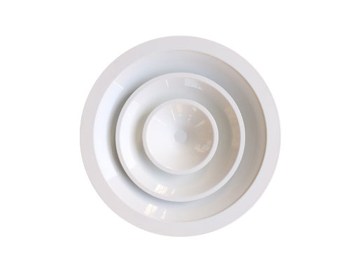 圓形散流器具有良好的散流特性和美觀的外形,其結構形式有多樣,有不同方向散流的形式,散流器外框和內芯可分離,拆裝容易,便于調節風量,可根據使用要求定制,散流器后端可配制風量調節閥。